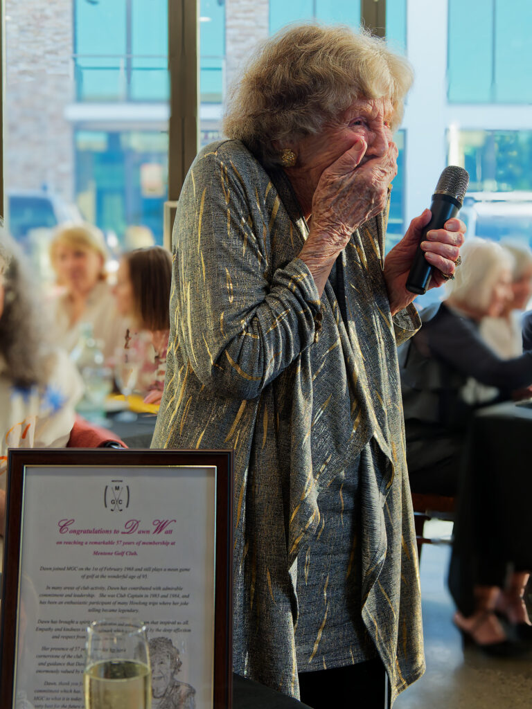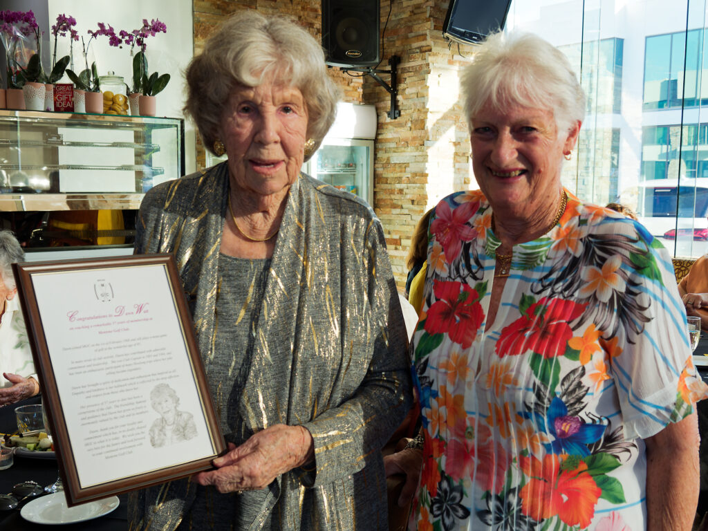 On this special occasion it was a treat to witness the presentation of a certificate and badge to Dawn Watt for her remarkable ’57 Years of Membership’ at Mentone Golf Club.